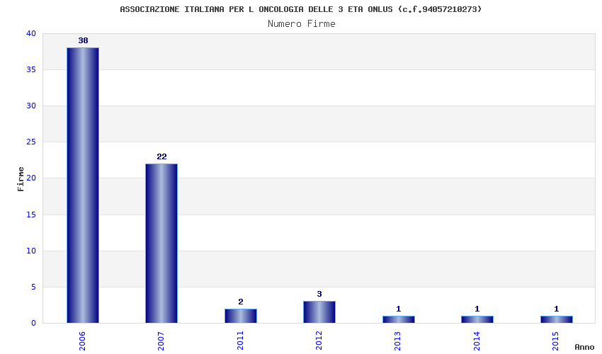 | Anno | Firme | Importi | Media | Naz. | Reg. | Prov. | Comu. |