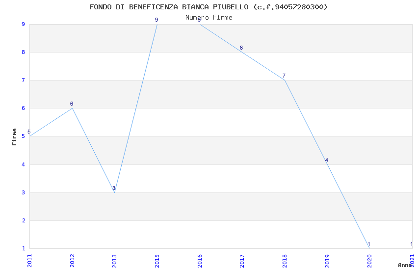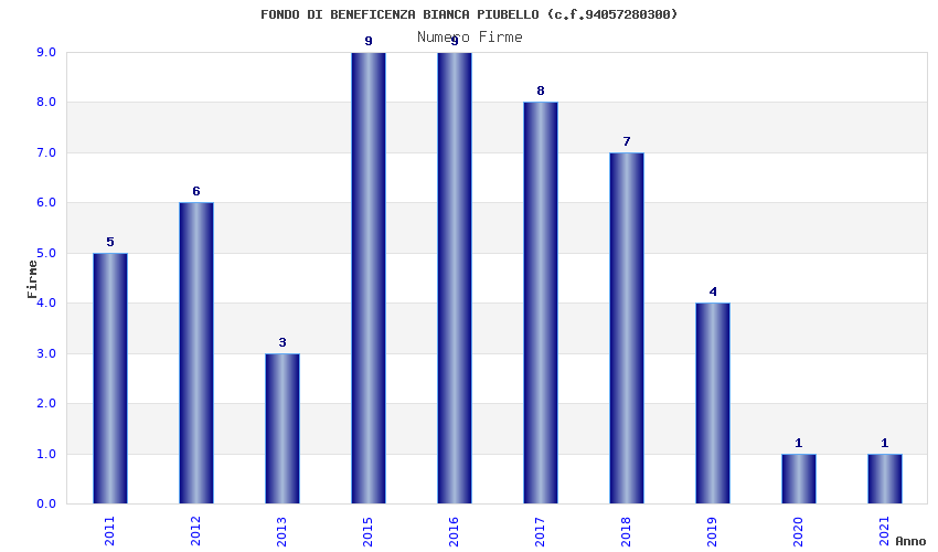 | Anno | Firme | Importi | Media | Naz. | Reg. | Prov. | Comu. |