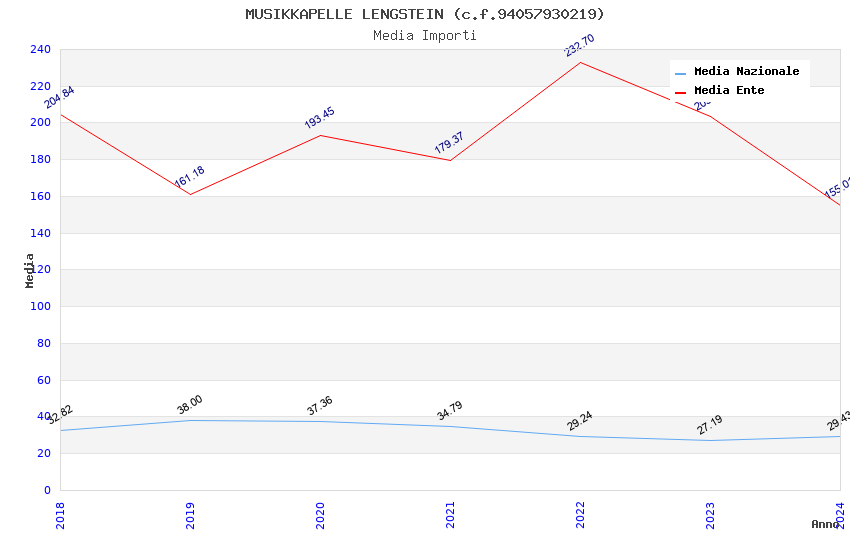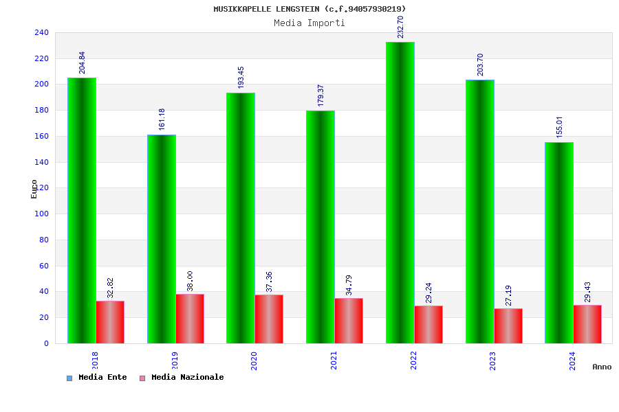 | Anno | Firme | Importi | Media | Naz. | Reg. | Prov. | Comu. |