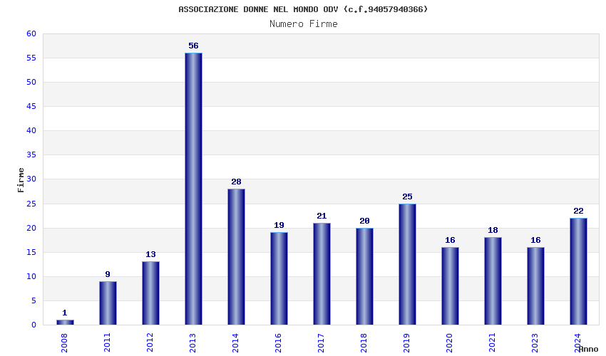 | Anno | Firme | Importi | Media | Naz. | Reg. | Prov. | Comu. |