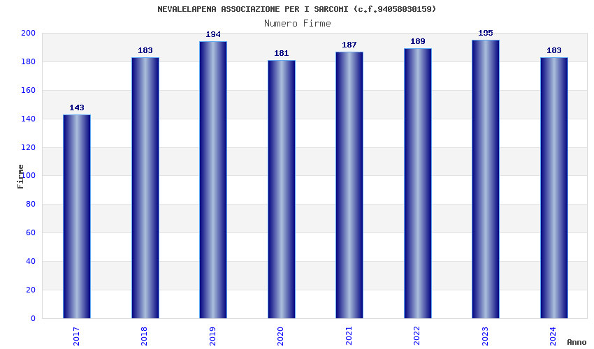 | Anno | Firme | Importi | Media | Naz. | Reg. | Prov. | Comu. |