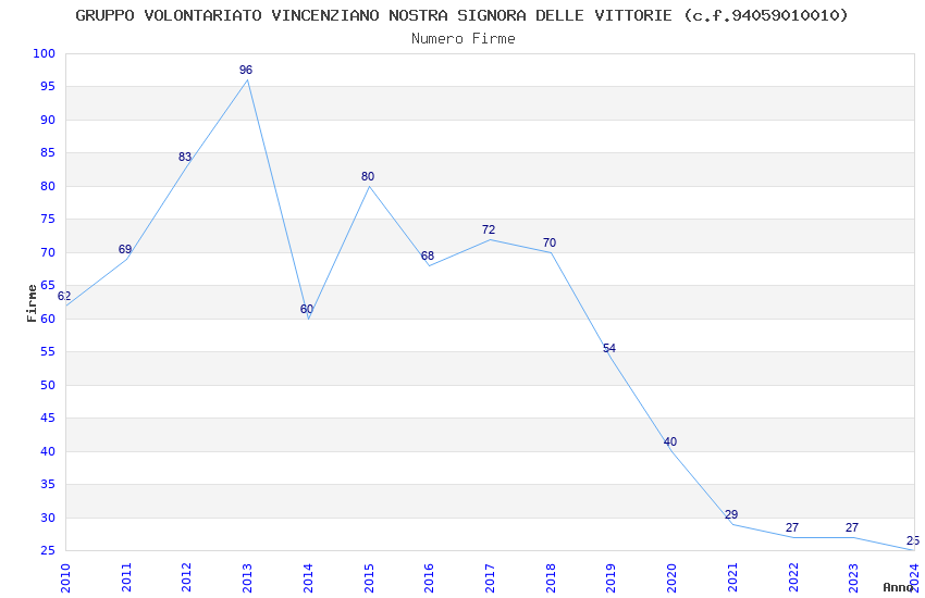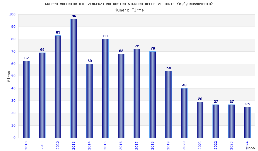 | Anno | Firme | Importi | Media | Naz. | Reg. | Prov. | Comu. |