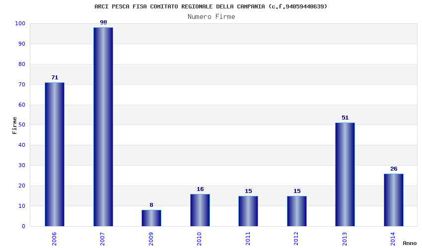 | Anno | Firme | Importi | Media | Naz. | Reg. | Prov. | Comu. |