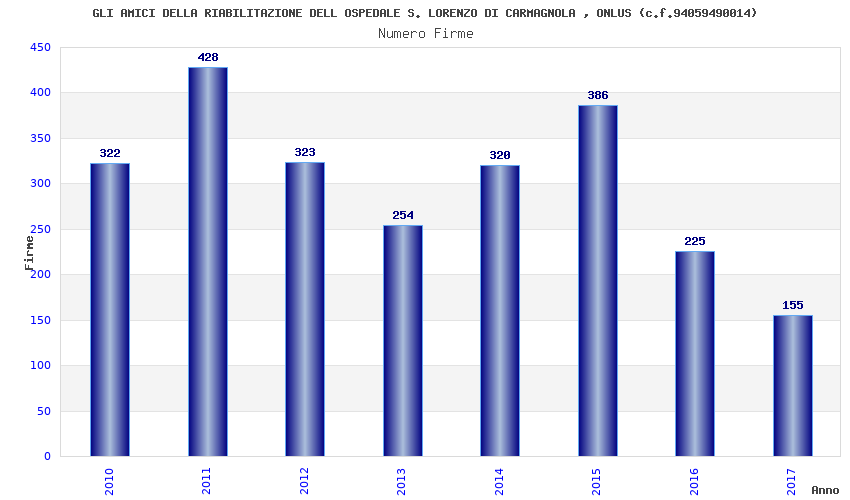 | Anno | Firme | Importi | Media | Naz. | Reg. | Prov. | Comu. |