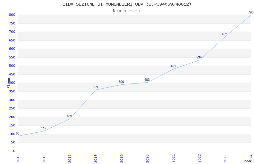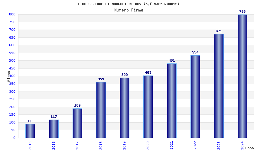 | Anno | Firme | Importi | Media | Naz. | Reg. | Prov. | Comu. |