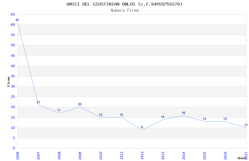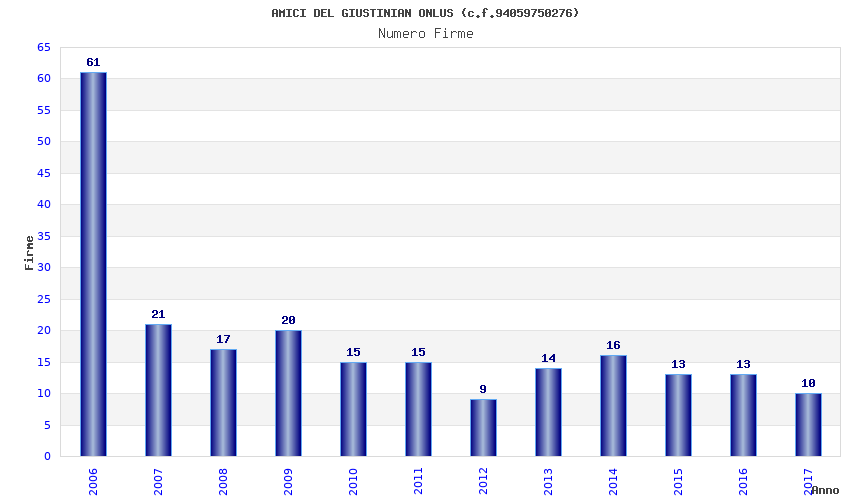 | Anno | Firme | Importi | Media | Naz. | Reg. | Prov. | Comu. |