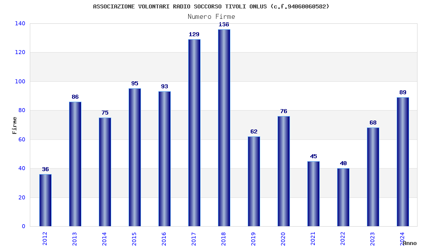 | Anno | Firme | Importi | Media | Naz. | Reg. | Prov. | Comu. |