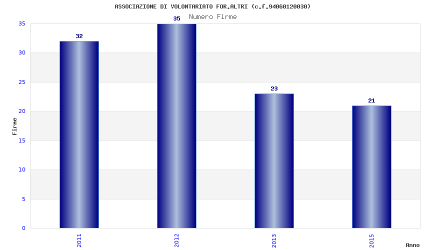 | Anno | Firme | Importi | Media | Naz. | Reg. | Prov. | Comu. |
