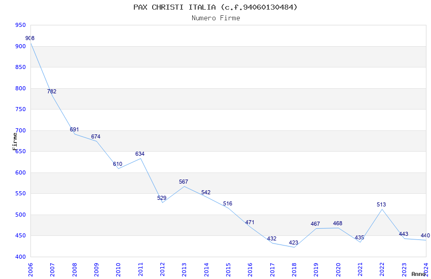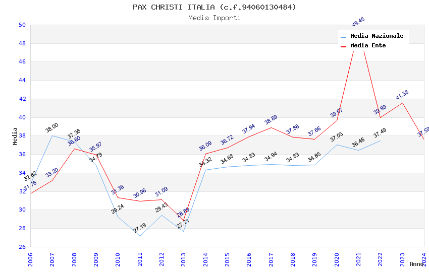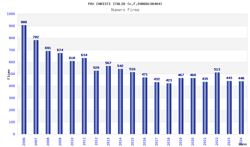 | Anno | Firme | Importi | Media | Naz. | Reg. | Prov. | Comu. |