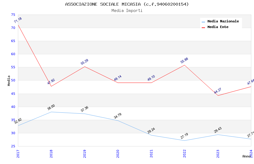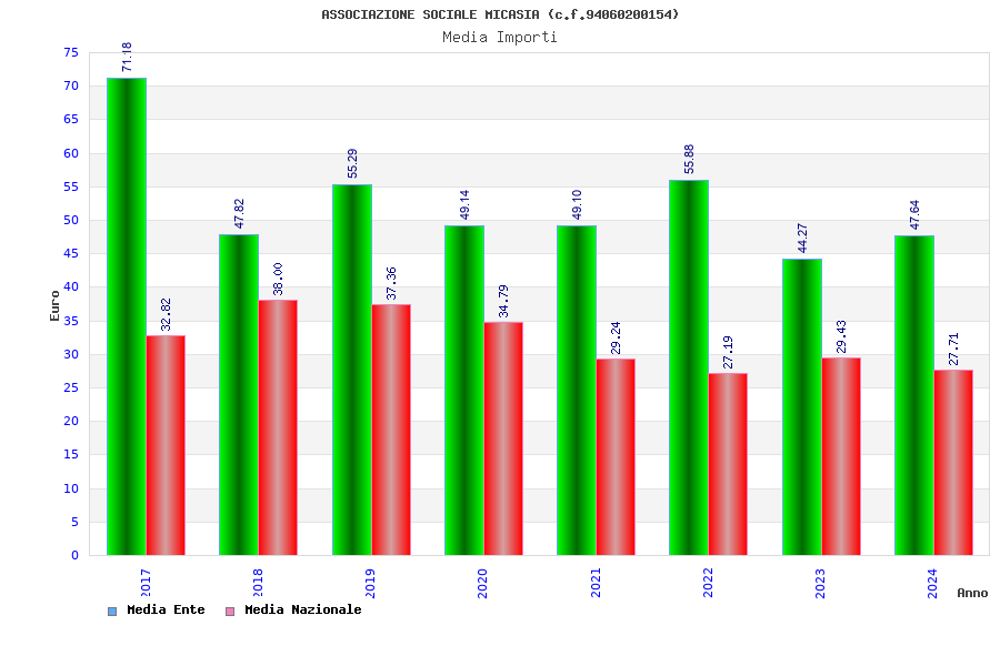 | Anno | Firme | Importi | Media | Naz. | Reg. | Prov. | Comu. |
