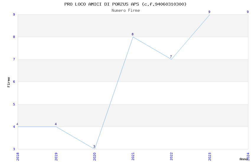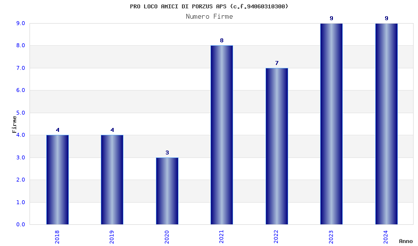 | Anno | Firme | Importi | Media | Naz. | Reg. | Prov. | Comu. |