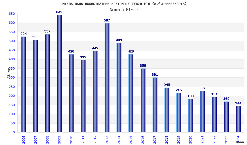 | Anno | Firme | Importi | Media | Naz. | Reg. | Prov. | Comu. |