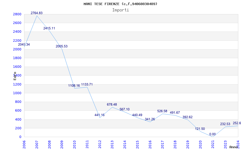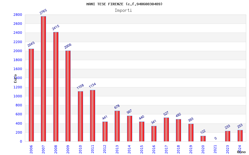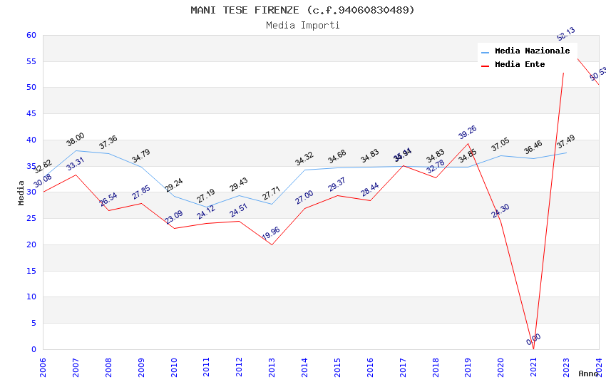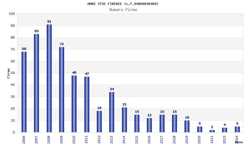 | Anno | Firme | Importi | Media | Naz. | Reg. | Prov. | Comu. |