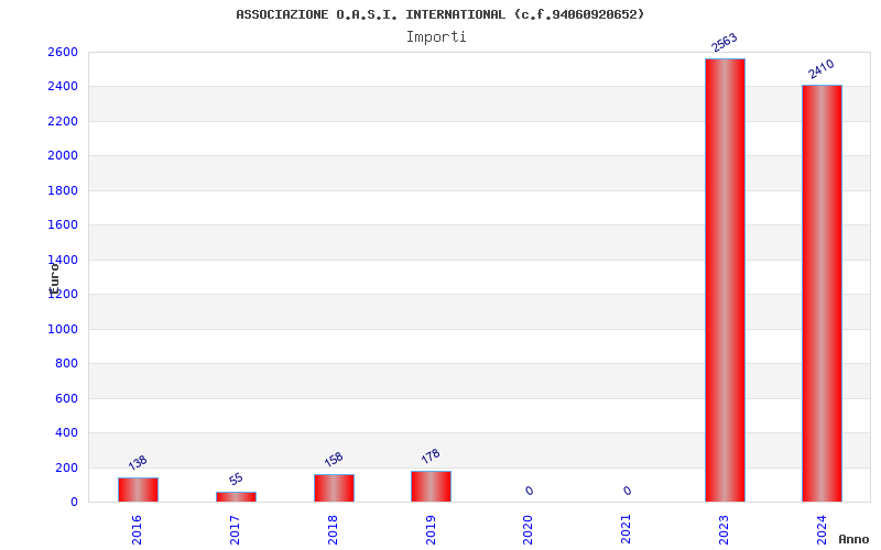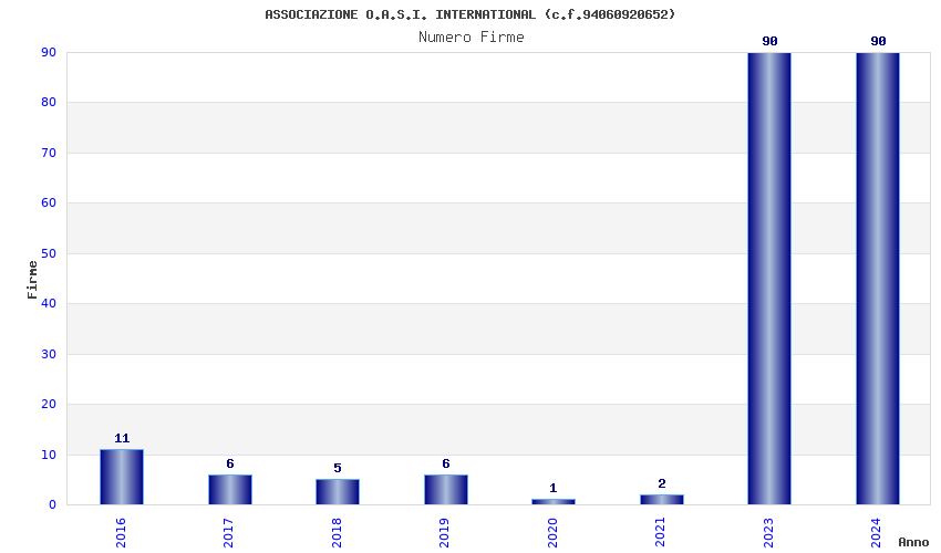 | Anno | Firme | Importi | Media | Naz. | Reg. | Prov. | Comu. |