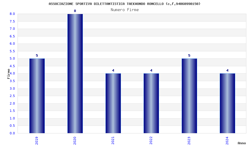 | Anno | Firme | Importi | Media | Naz. | Reg. | Prov. | Comu. |