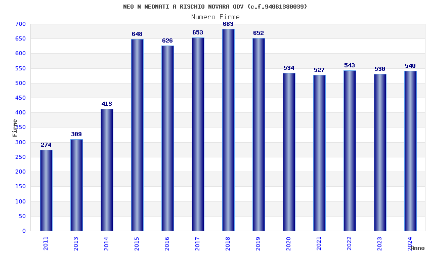 | Anno | Firme | Importi | Media | Naz. | Reg. | Prov. | Comu. |