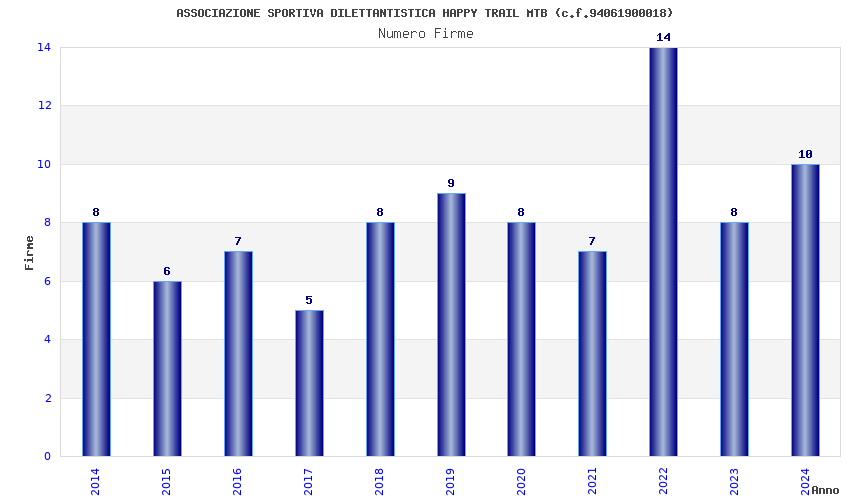 | Anno | Firme | Importi | Media | Naz. | Reg. | Prov. | Comu. |