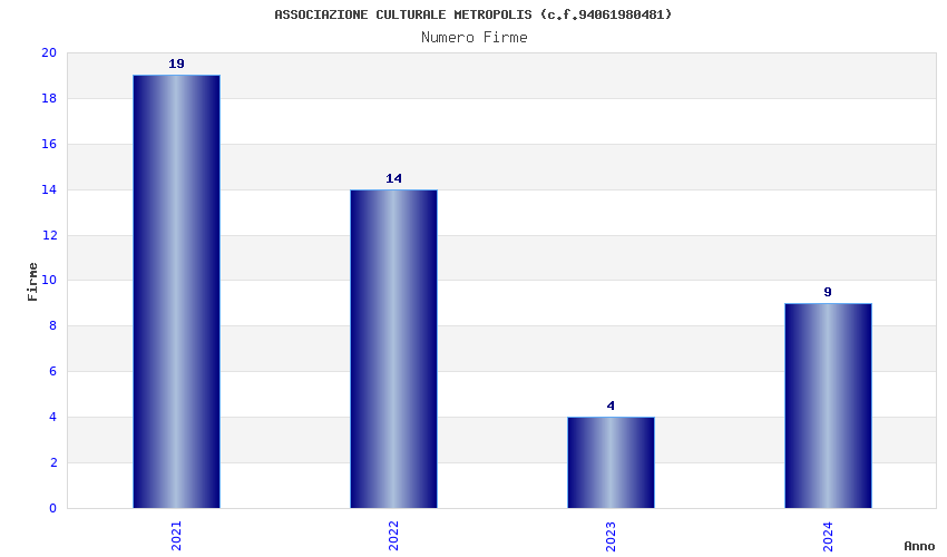 | Anno | Firme | Importi | Media | Naz. | Reg. | Prov. | Comu. |