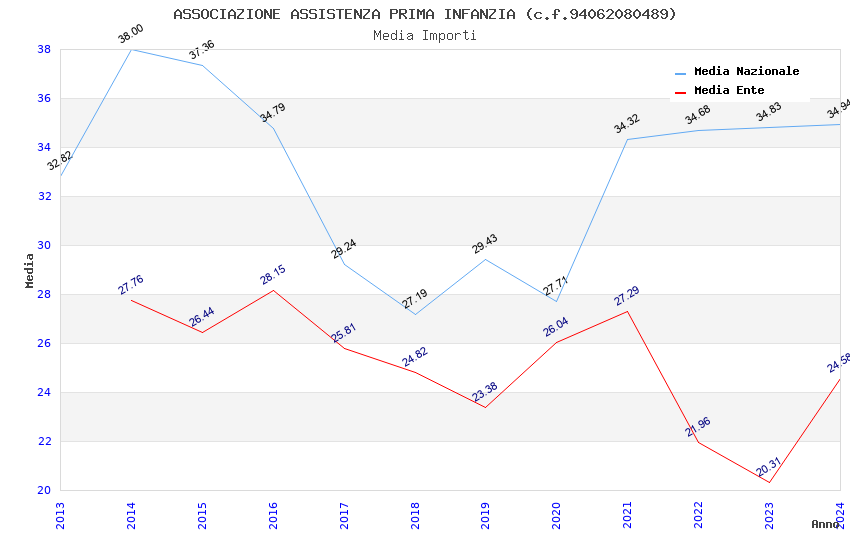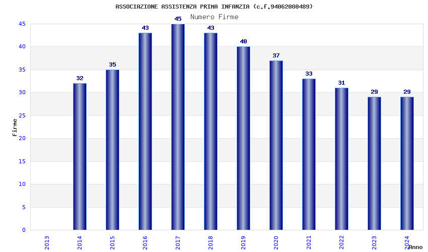 | Anno | Firme | Importi | Media | Naz. | Reg. | Prov. | Comu. |