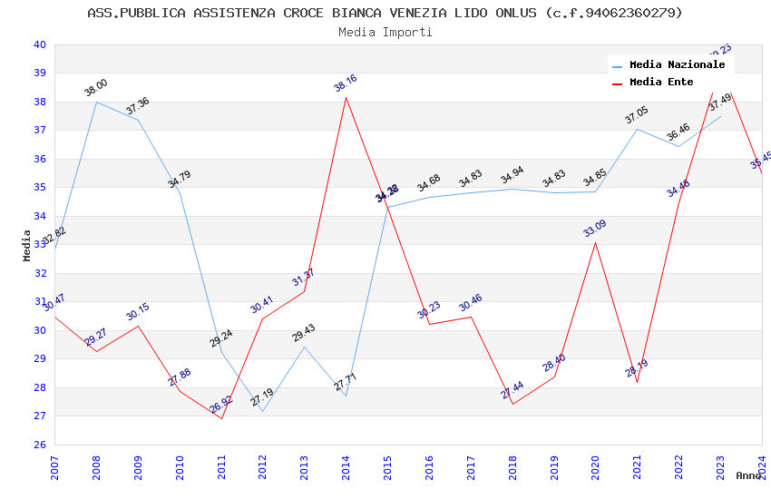 | Anno | Firme | Importi | Media | Naz. | Reg. | Prov. | Comu. |