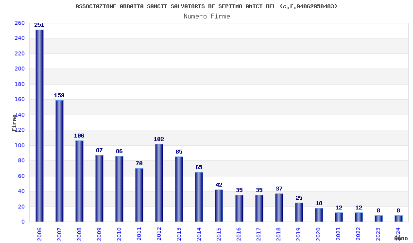 | Anno | Firme | Importi | Media | Naz. | Reg. | Prov. | Comu. |