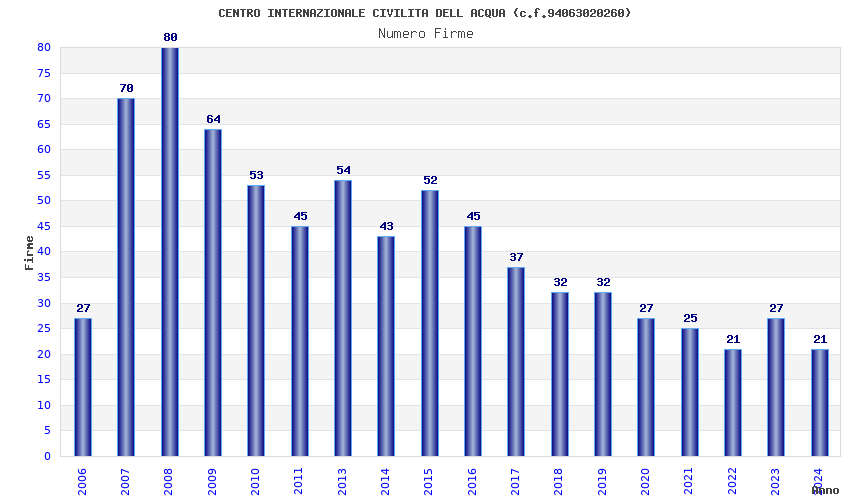| Anno | Firme | Importi | Media | Naz. | Reg. | Prov. | Comu. |