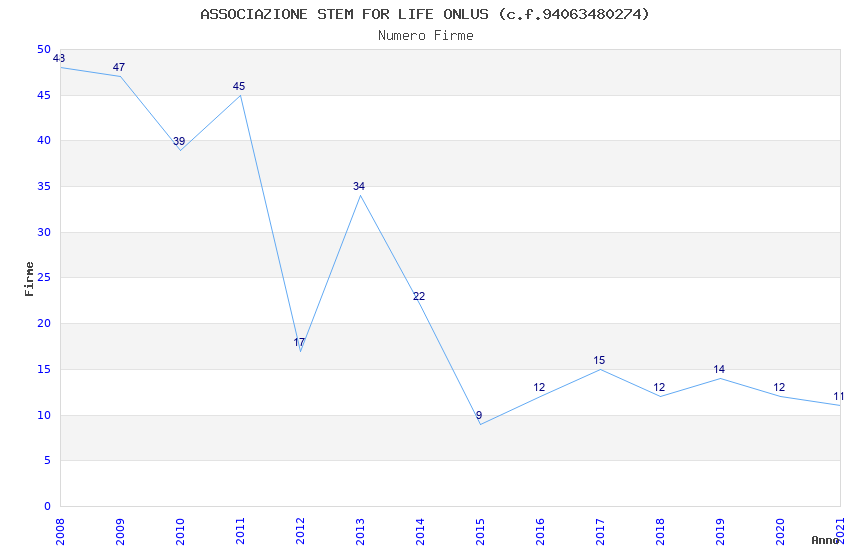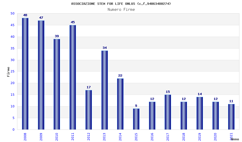 | Anno | Firme | Importi | Media | Naz. | Reg. | Prov. | Comu. |