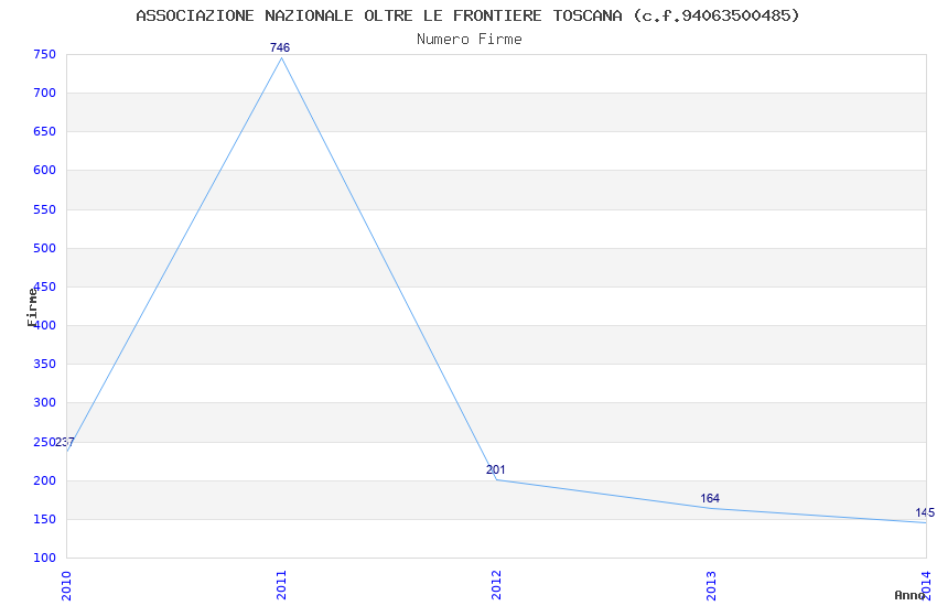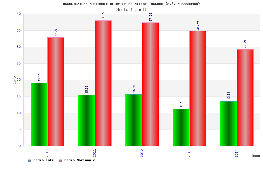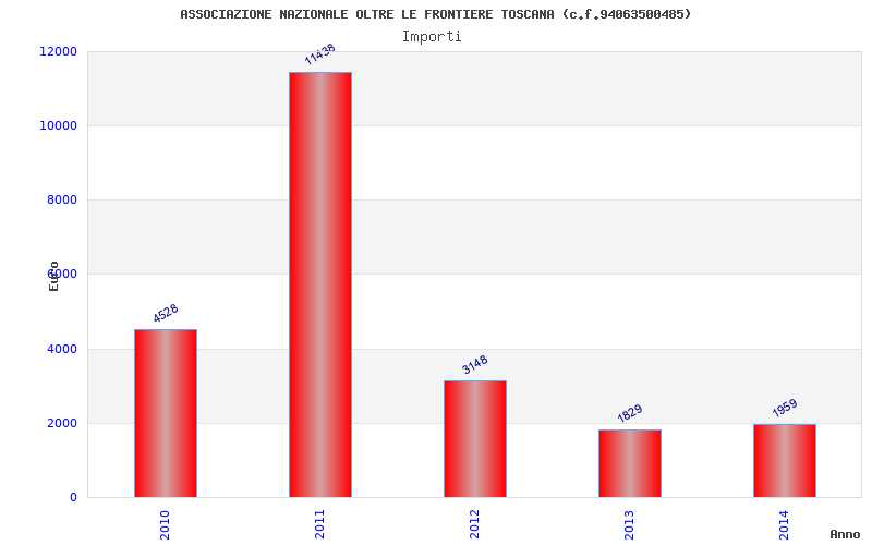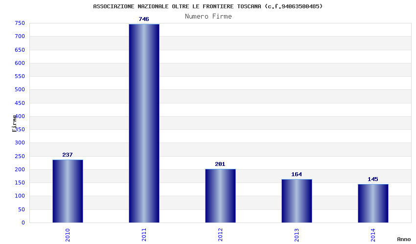 | Anno | Firme | Importi | Media | Naz. | Reg. | Prov. | Comu. |