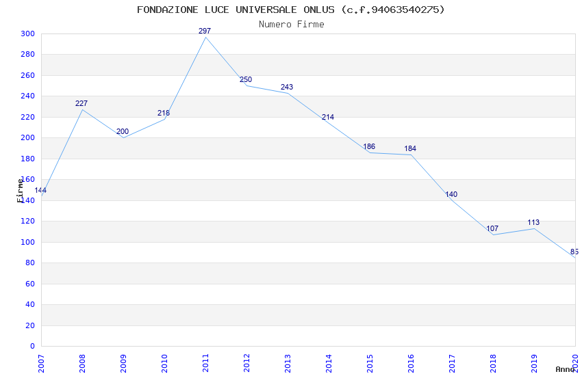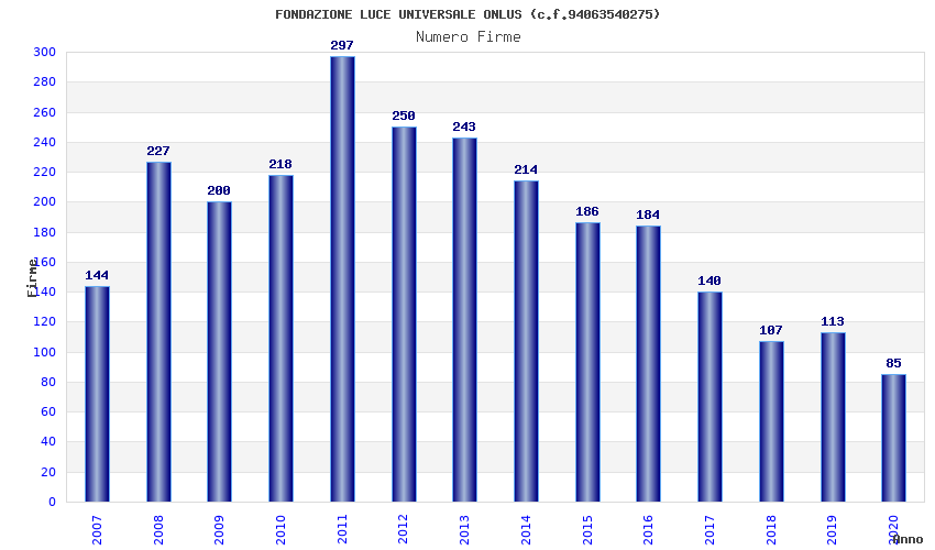 | Anno | Firme | Importi | Media | Naz. | Reg. | Prov. | Comu. |