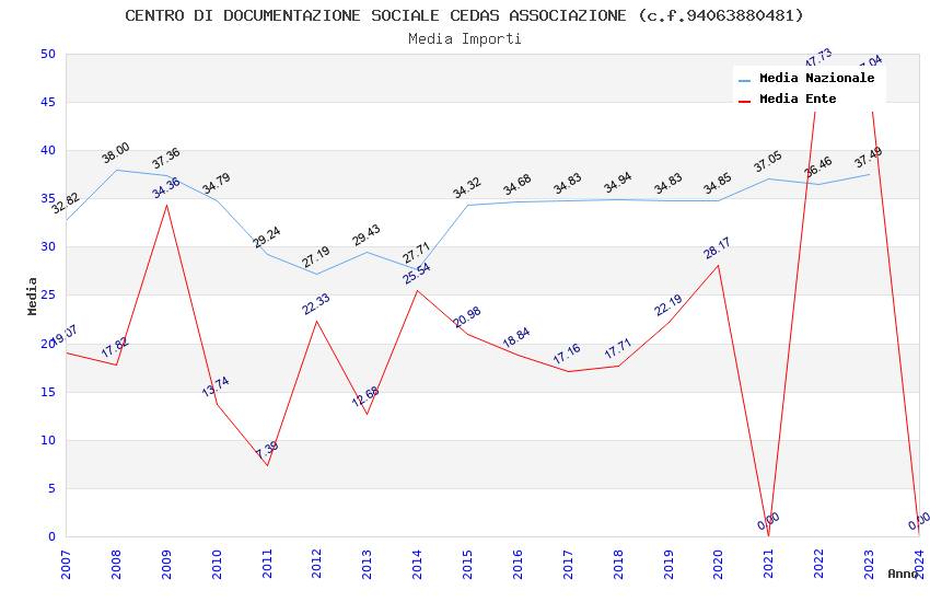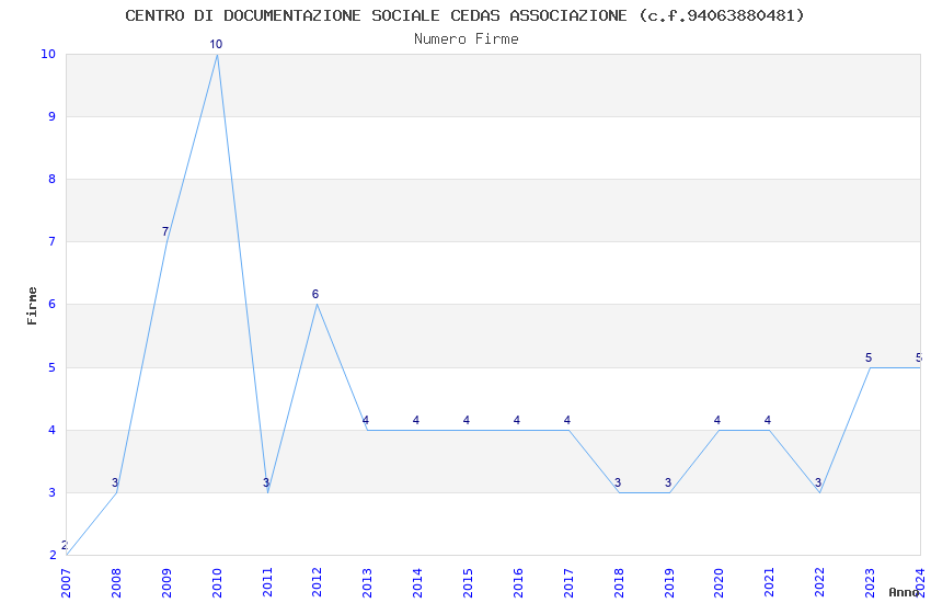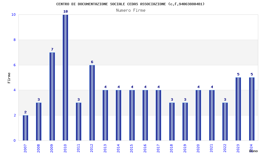 | Anno | Firme | Importi | Media | Naz. | Reg. | Prov. | Comu. |