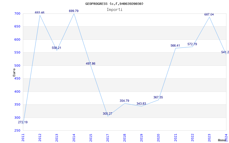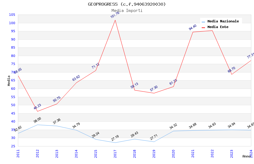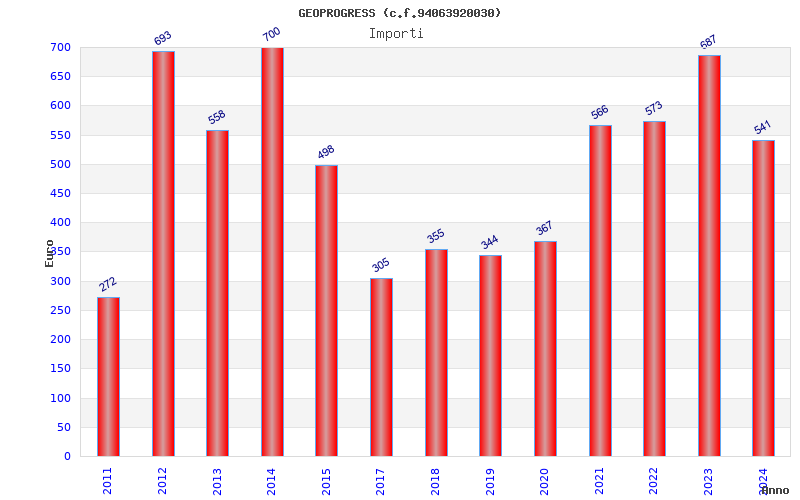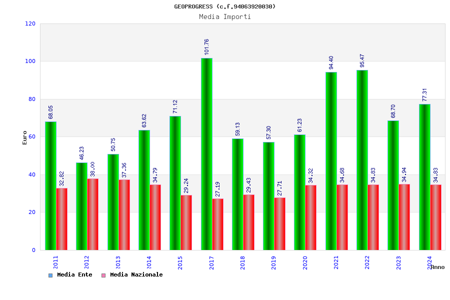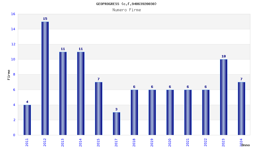 | Anno | Firme | Importi | Media | Naz. | Reg. | Prov. | Comu. |