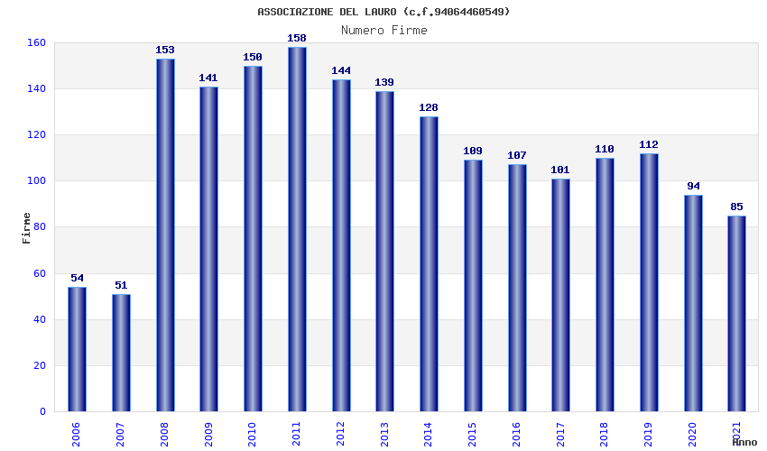 | Anno | Firme | Importi | Media | Naz. | Reg. | Prov. | Comu. |