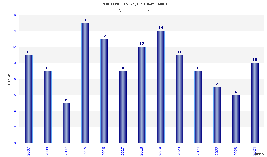 | Anno | Firme | Importi | Media | Naz. | Reg. | Prov. | Comu. |
