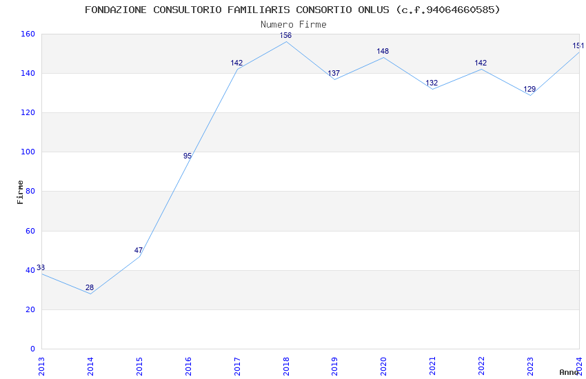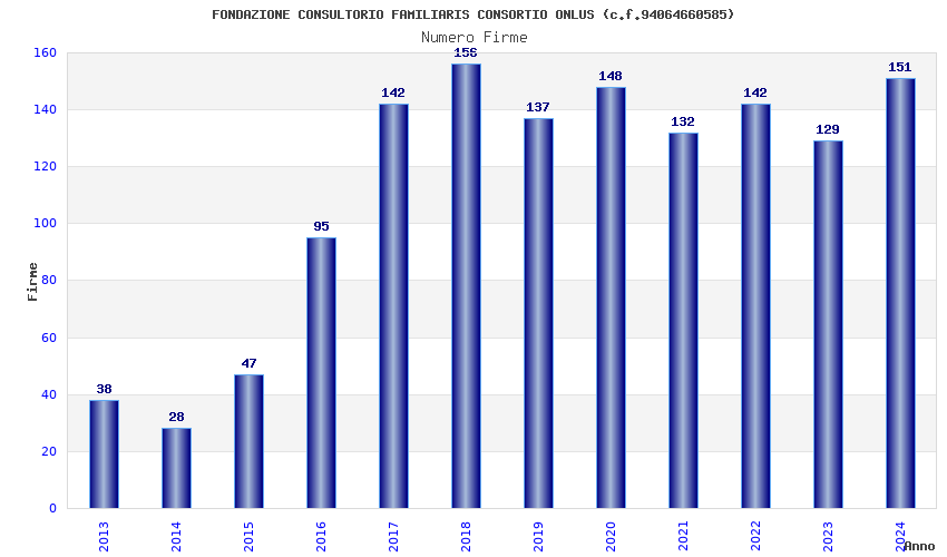 | Anno | Firme | Importi | Media | Naz. | Reg. | Prov. | Comu. |
