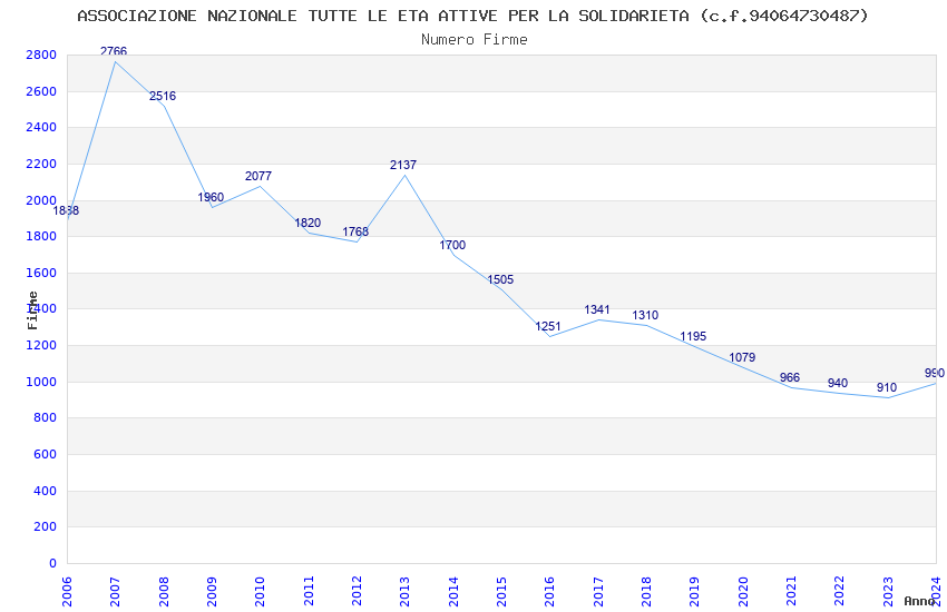 | Anno | Firme | Importi | Media | Naz. | Reg. | Prov. | Comu. |