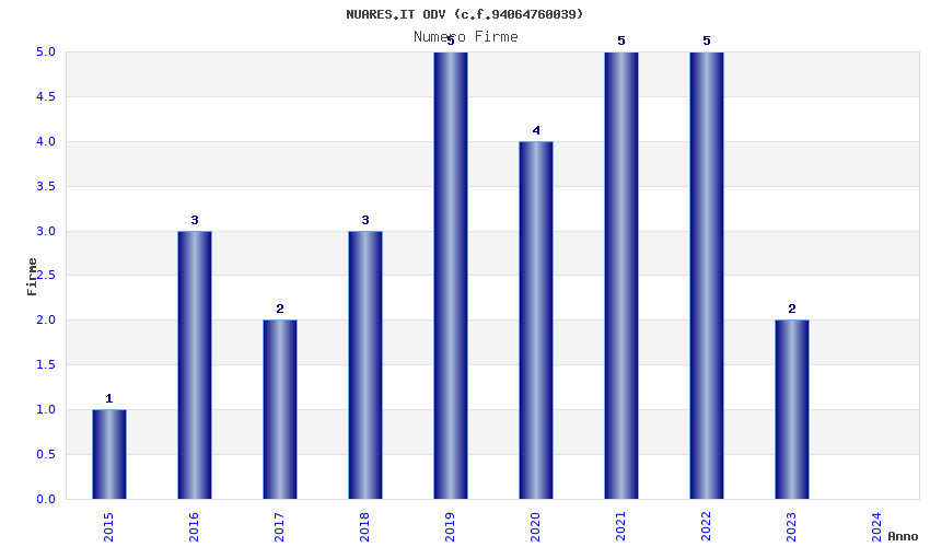 | Anno | Firme | Importi | Media | Naz. | Reg. | Prov. | Comu. |