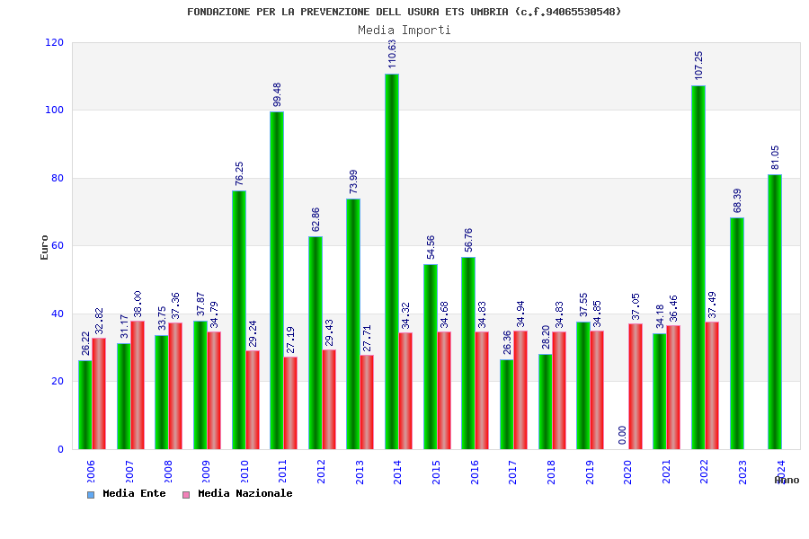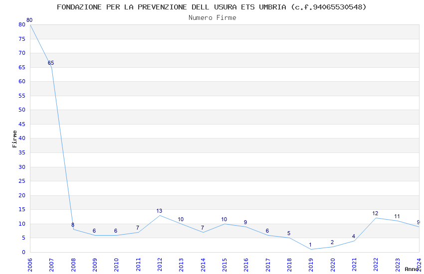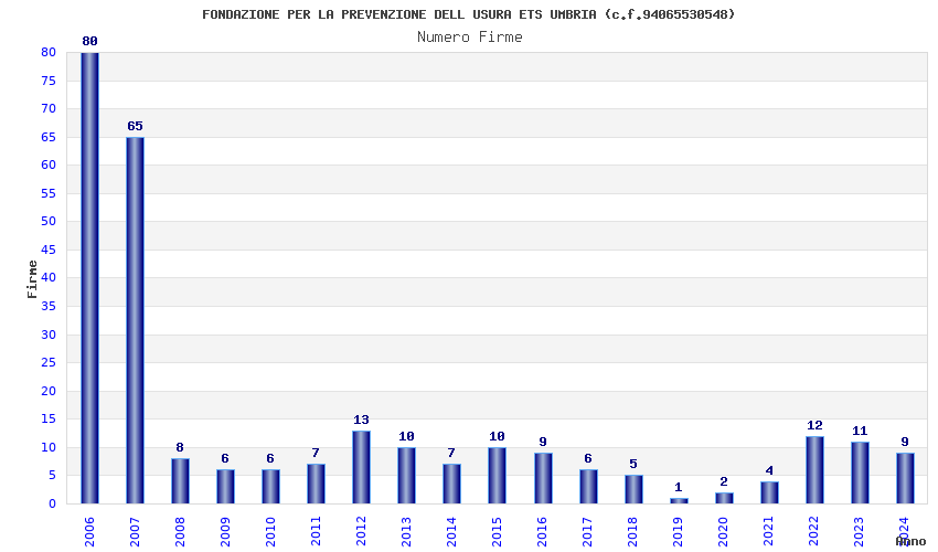 | Anno | Firme | Importi | Media | Naz. | Reg. | Prov. | Comu. |