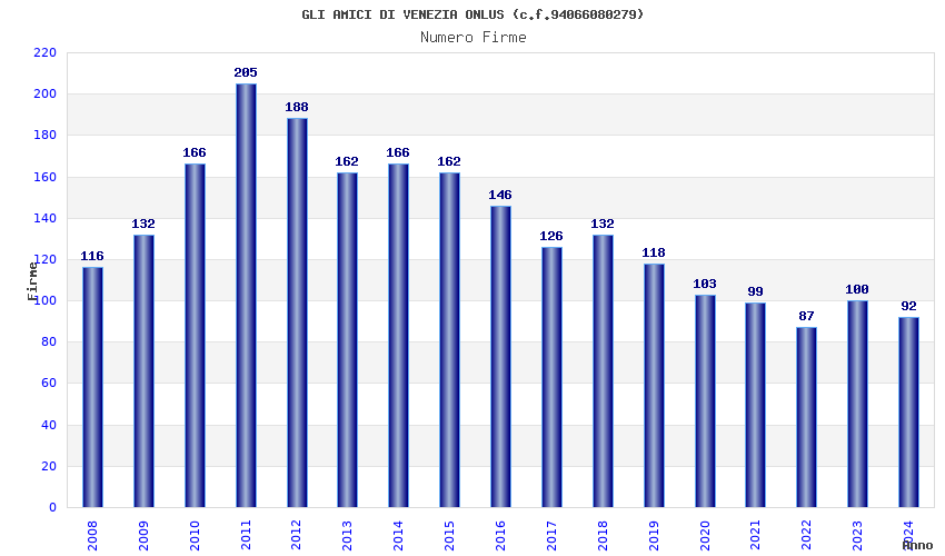 | Anno | Firme | Importi | Media | Naz. | Reg. | Prov. | Comu. |