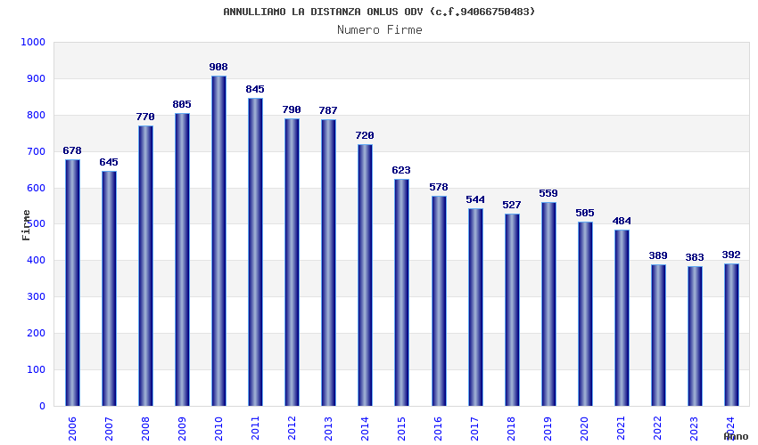 | Anno | Firme | Importi | Media | Naz. | Reg. | Prov. | Comu. |