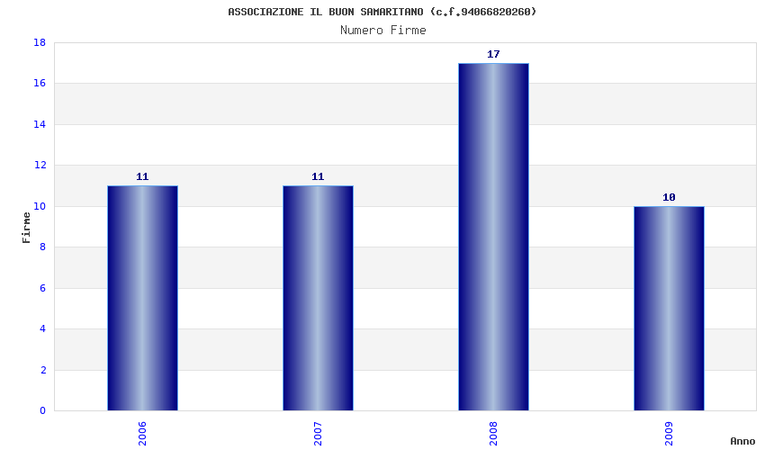 | Anno | Firme | Importi | Media | Naz. | Reg. | Prov. | Comu. |