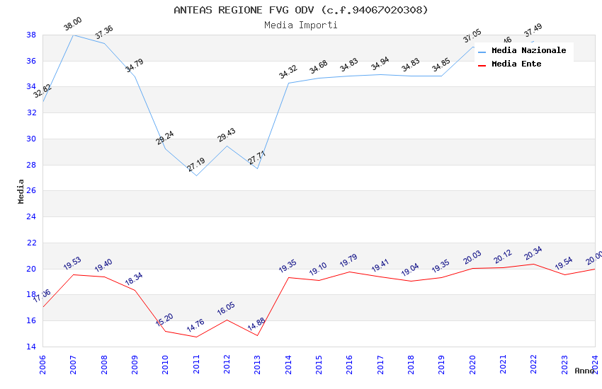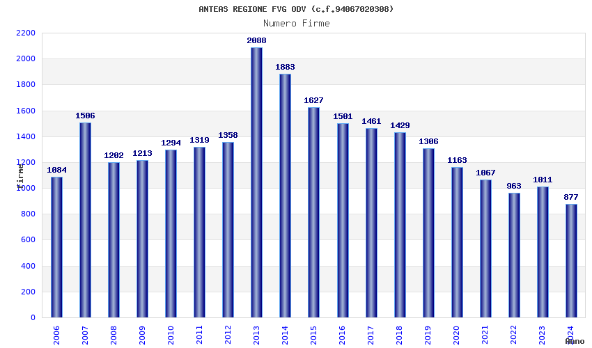 | Anno | Firme | Importi | Media | Naz. | Reg. | Prov. | Comu. |