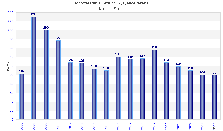 Anno Firme Importi Media Naz. Reg. Prov. Comu.