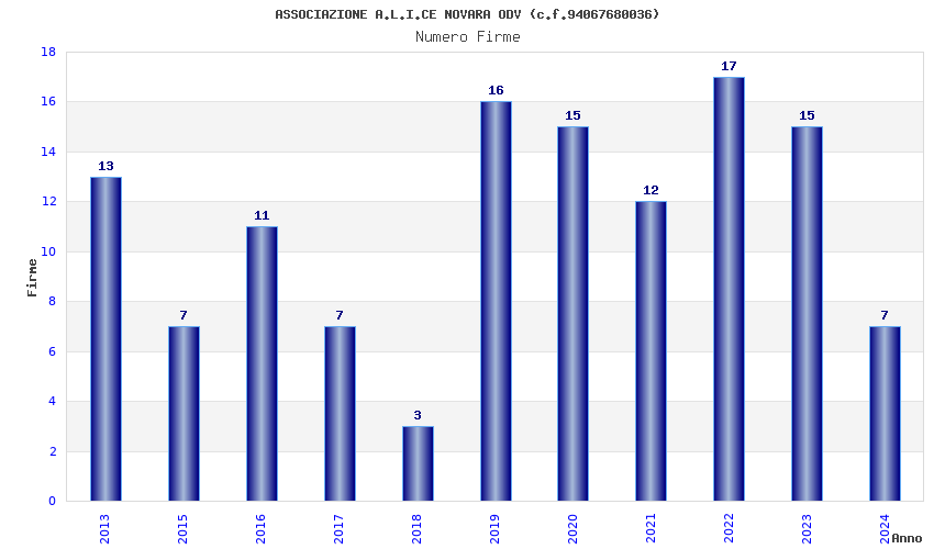 | Anno | Firme | Importi | Media | Naz. | Reg. | Prov. | Comu. |