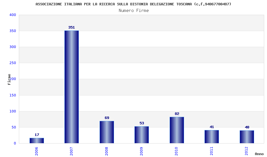 | Anno | Firme | Importi | Media | Naz. | Reg. | Prov. | Comu. |
