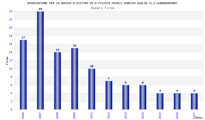 | Anno | Firme | Importi | Media | Naz. | Reg. | Prov. | Comu. |