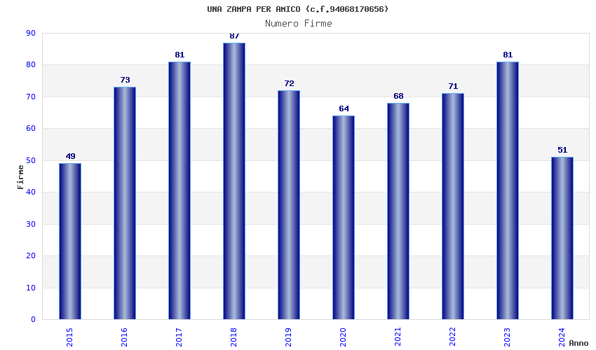 | Anno | Firme | Importi | Media | Naz. | Reg. | Prov. | Comu. |