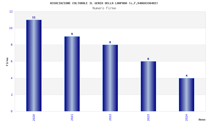 | Anno | Firme | Importi | Media | Naz. | Reg. | Prov. | Comu. |