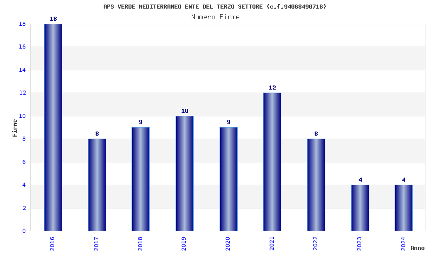 | Anno | Firme | Importi | Media | Naz. | Reg. | Prov. | Comu. |