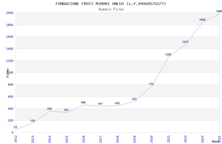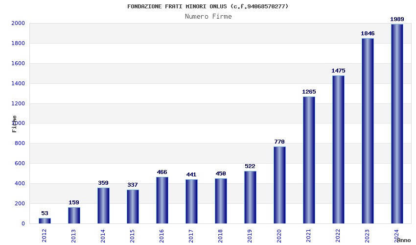 | Anno | Firme | Importi | Media | Naz. | Reg. | Prov. | Comu. |