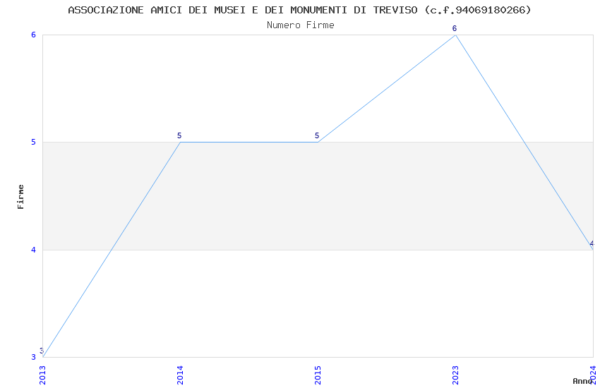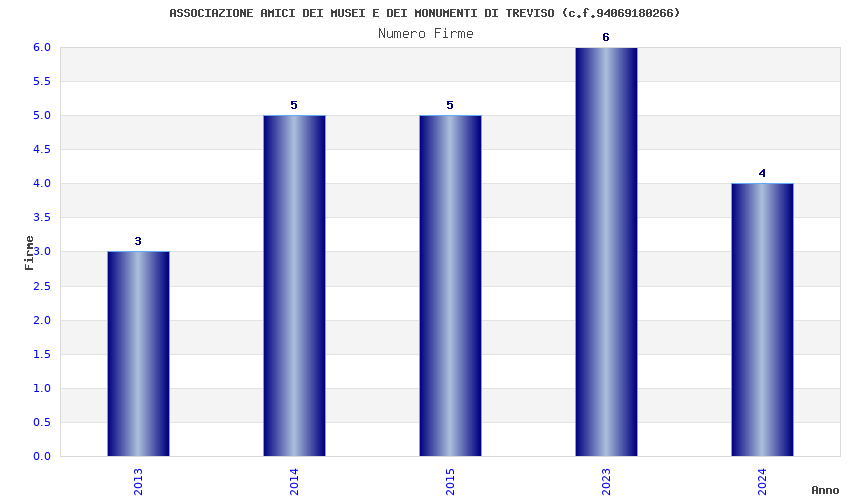 | Anno | Firme | Importi | Media | Naz. | Reg. | Prov. | Comu. |